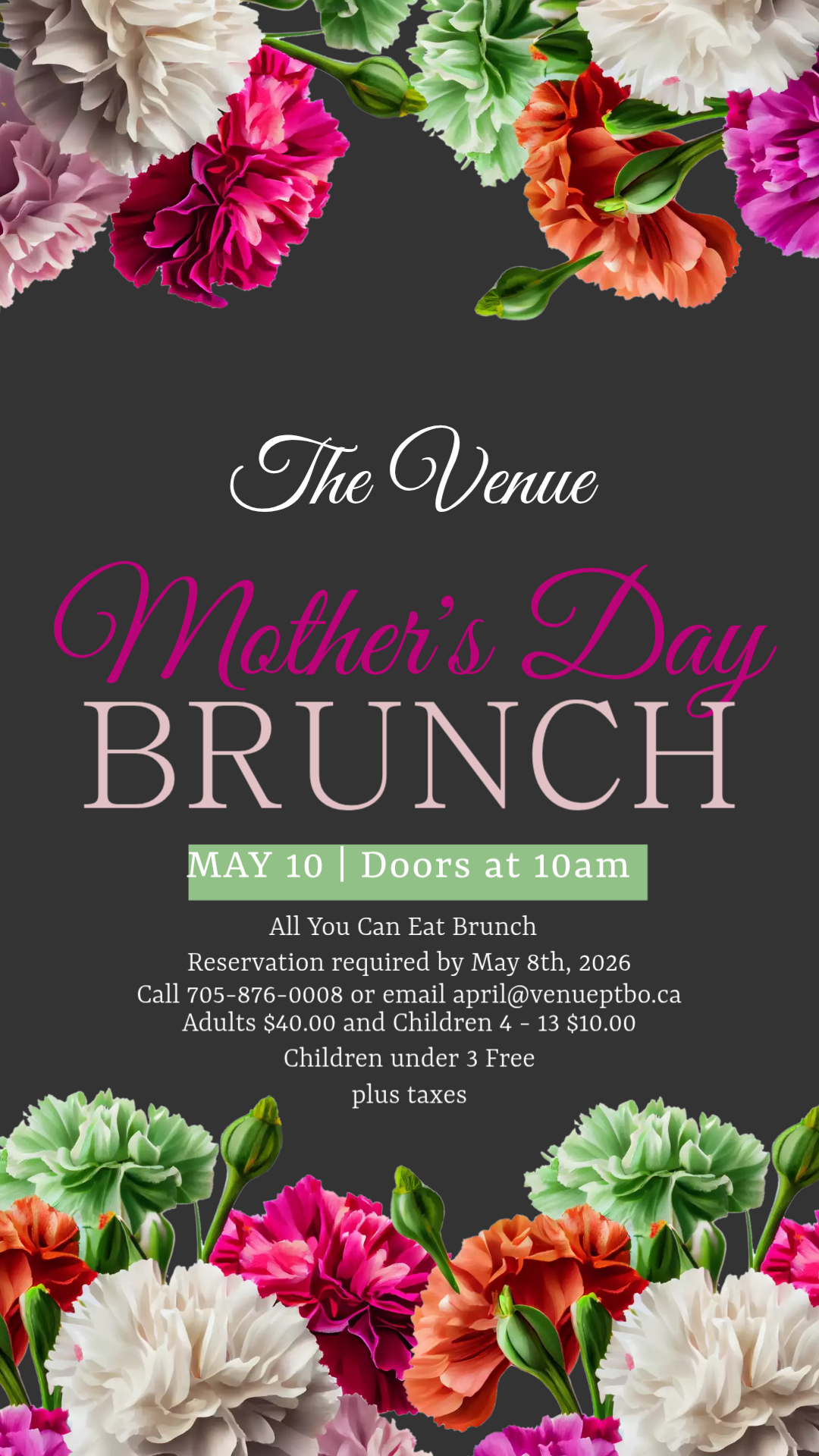 🌸💐 Celebrate Mom in Style 💐🌸 Join us at The Venue for a beautiful Mother’s Day Brunch filled with great food, family fun, and unforgettable moments! 📅 May 10 ⏰ Doors open at 10AM ✨ All You Can Eat Brunch 🎈 Bouncy Castle for the kids 📸 Photo Booth to capture the memories Reservations required […]